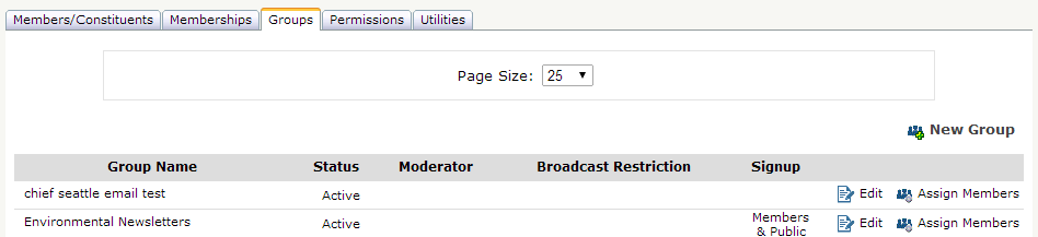 The Groups tab contains all the management functions for creating groups and eLists.